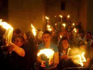 На праздник Пасхи это очень явно видно. Люди идут "святить" яйца, испеченные "паски", вино, шампанское, водку и т.п.